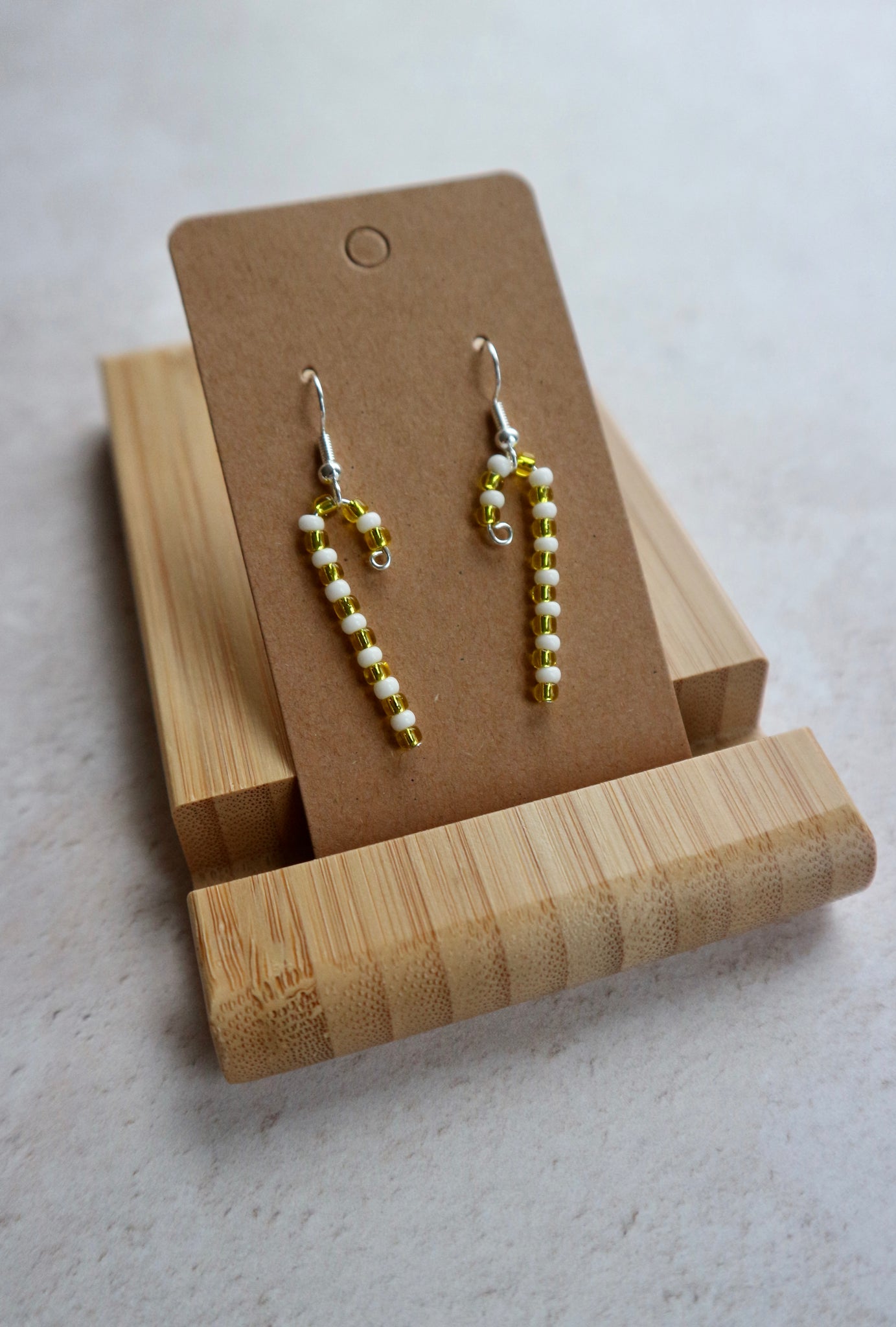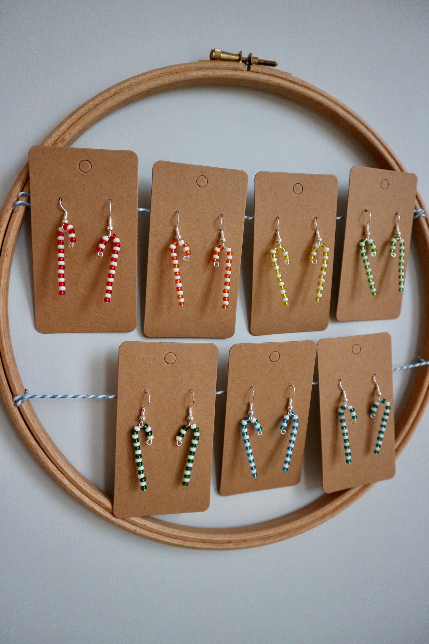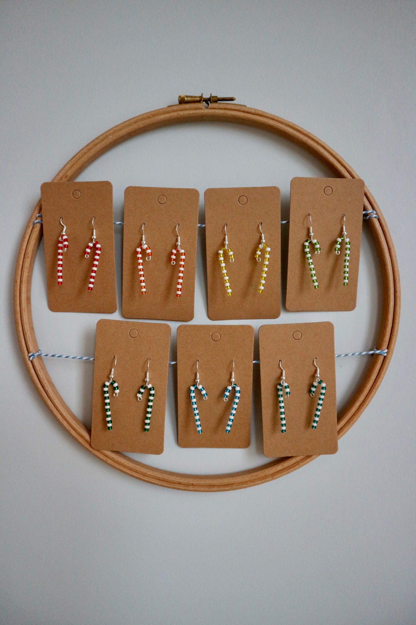 Small and adorable Candy Cane earrings. Made from glass seed beads in alternating colours of shiny red and matte white.